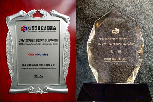 金风玉露,山水杭州,9月26日在第九届中国国际服务外包交易博览会上,方正宽带全资子公司苏州方正融合通信服务有限公司喜获“2018年度中国服务外包客户中心行业领军企业”、“中国服务外包百强企业”两项企业大奖,方正融合通信高级副总经理高珊女士荣获“中国服务外包杰出贡献人物客户中心行业领军人物”殊荣。三大奖项由博览会承办方中国国际投资促进会经专家评议审核颁发,是业内最具权威性和代表性的奖项。
